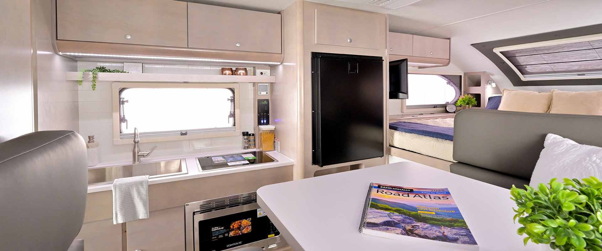 The mid-size Cirrus with dry bath and spacious kitchen. Fits long-bed trucks. Known for quality construction with Amish craftsmanship and modern amenities.
