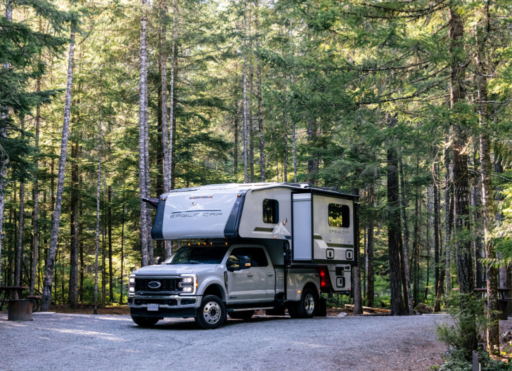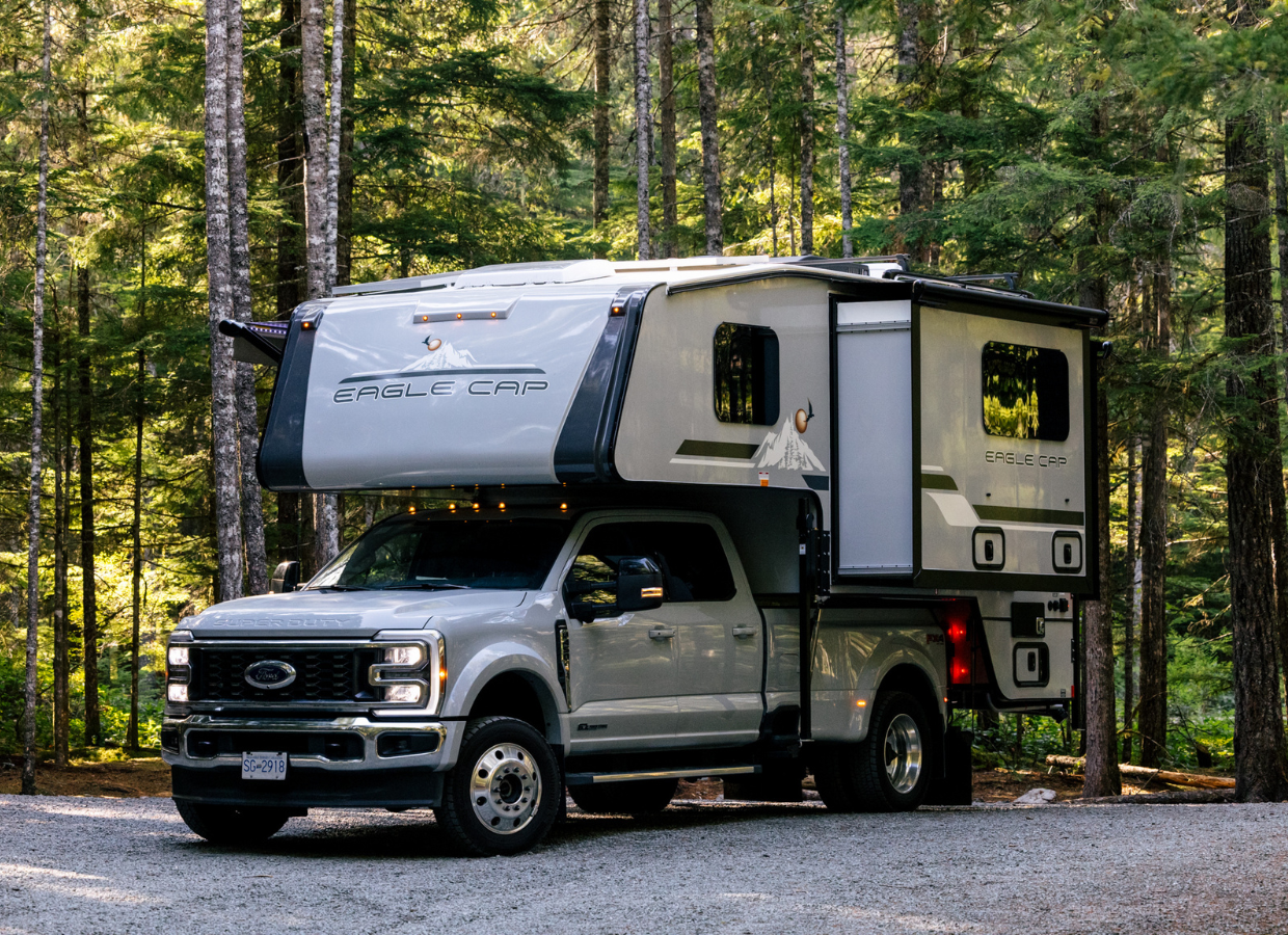 Adventurer Manufacturing's premium Eagle Cap line. The 1165 is a triple-slide camper with residential amenities including full dry bath, large kitchen, and optional king bed. One of the most spacious truck campers made.