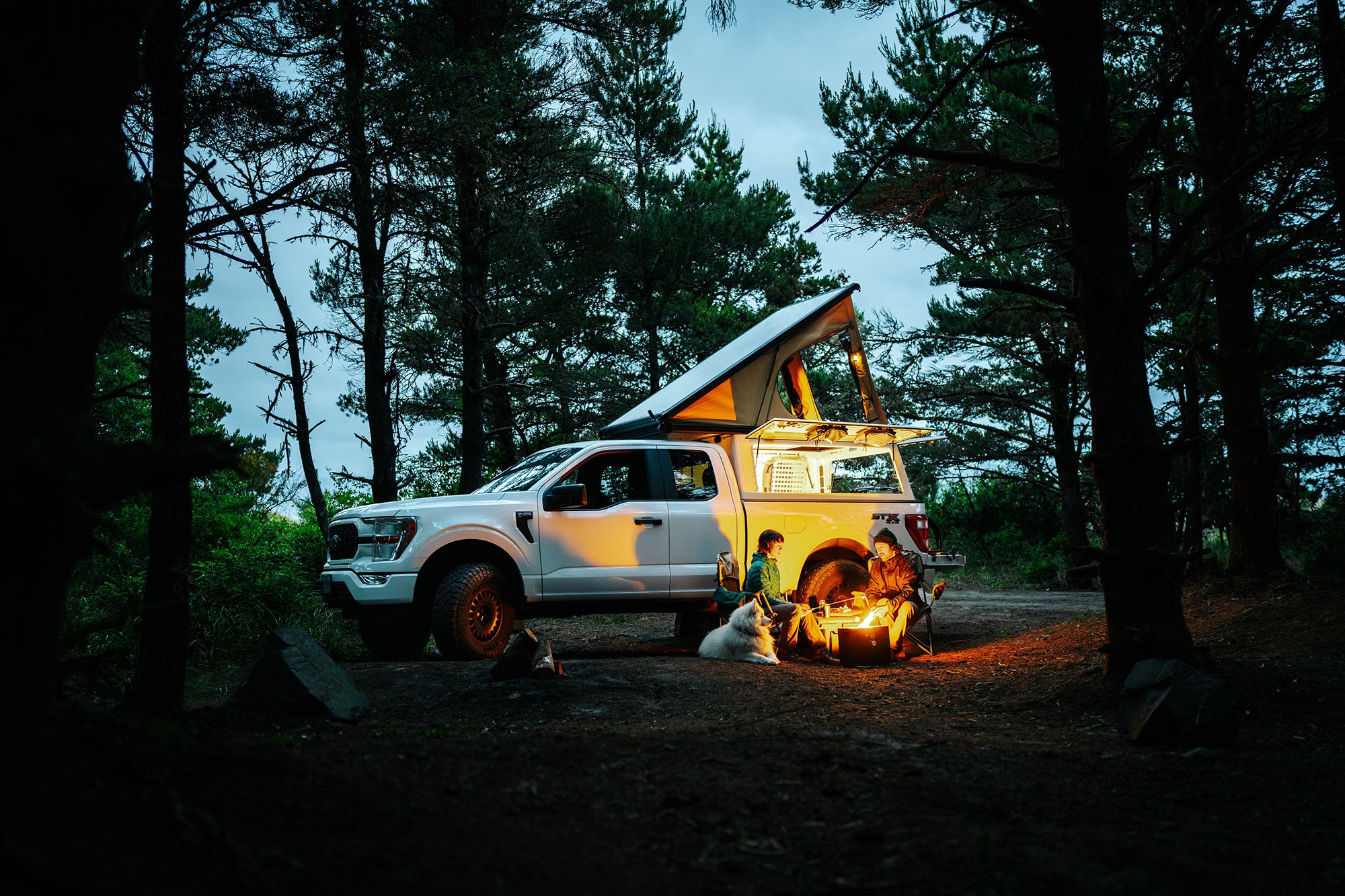 An aerospace-grade aluminum wedge camper with a lofted sleeping platform and 4-season tent system. The X1 uses a unique hinged panel design for weather protection and ventilation. Built in Portland, OR with attention to material quality.